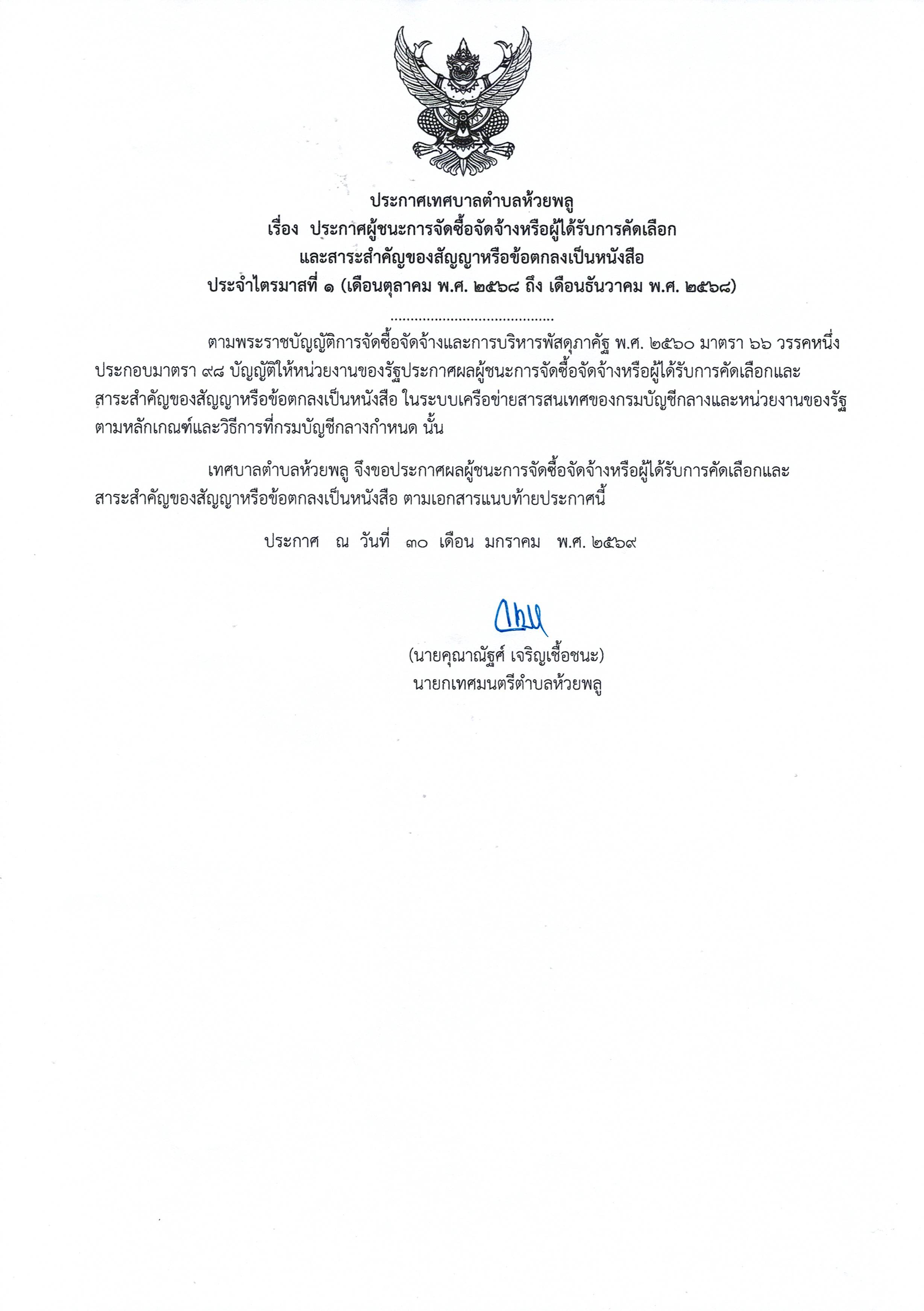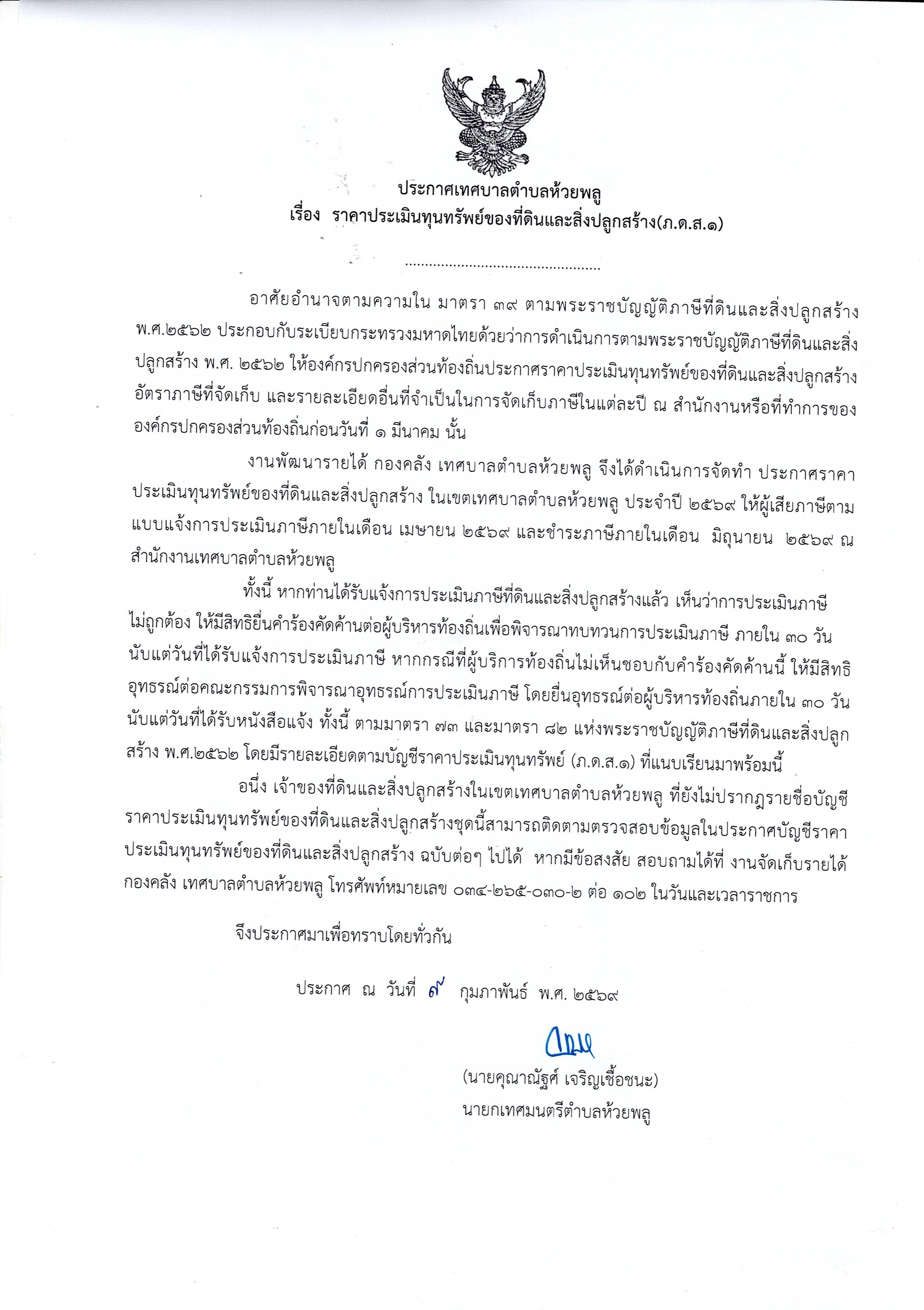 ประกาศสภาเทศบาลตำบลห้วยพลู เรื่อง เรียกประชุมสภาเทศบาลตำบลห้วยพลู สมัยสามัญ สมัยแรก ประจำปี พ.ศ. 2569